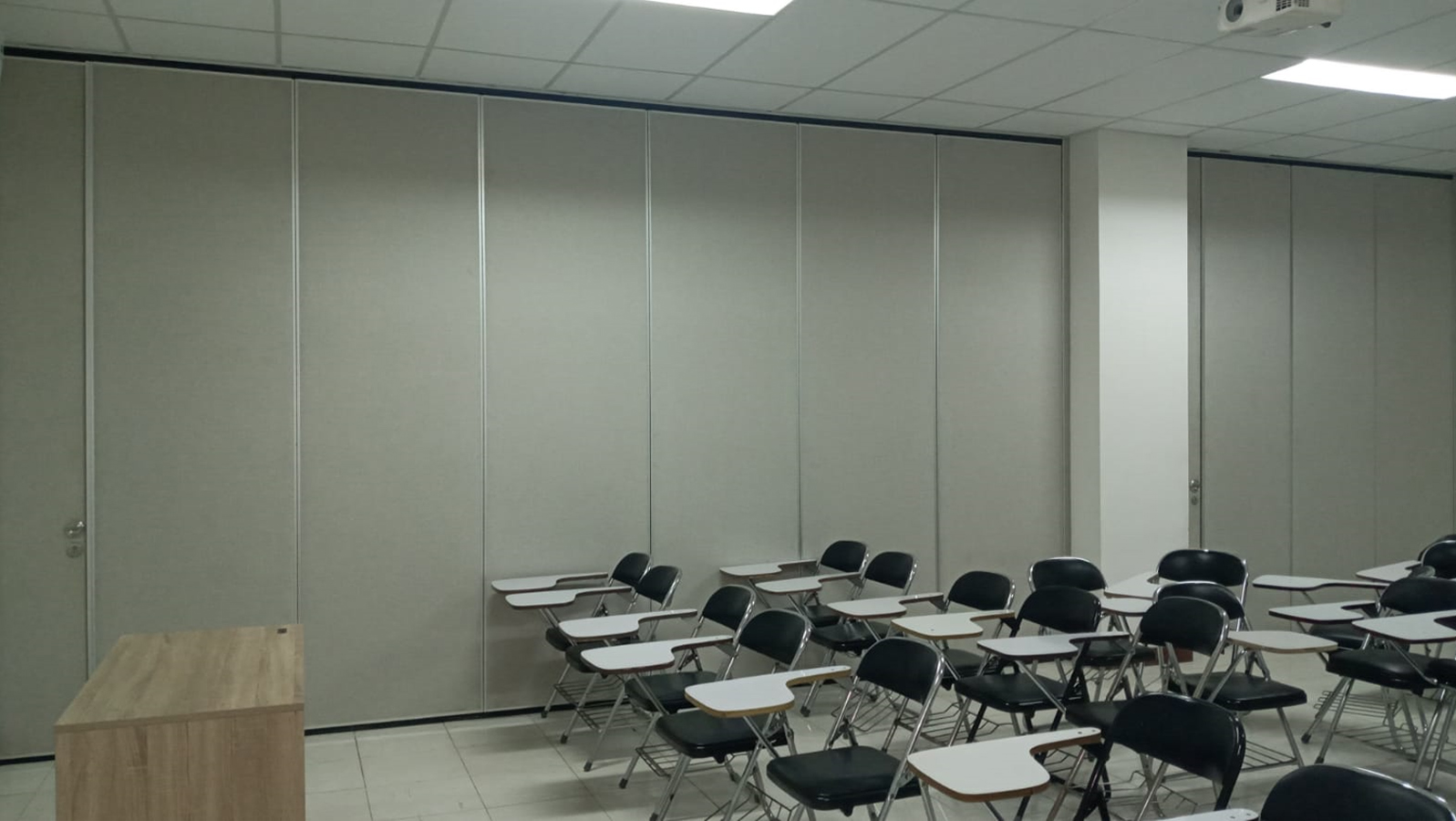 Ruang kuliah yang luas bisa disekat menjadi 2 atau lebih bagian, sehingga menjadikan ruangan fleksibel dan efisien