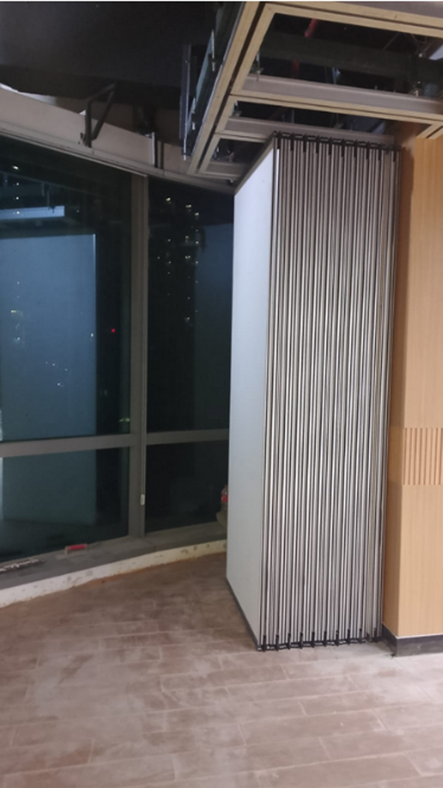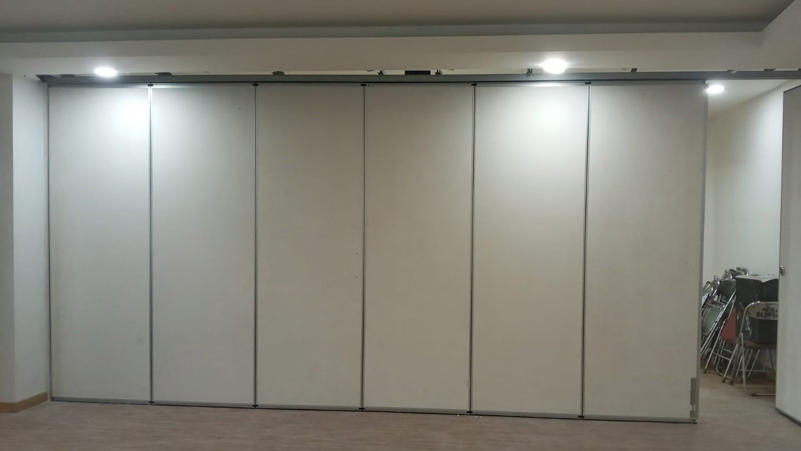 Pembagi ruang atu sekat ruang yg dilengkapi dengan peredan suara> yang baik sehingga dua ruang yang bersebelahan dapat digunakan dalam waktu bersamaan tanpa ada gangguan suara